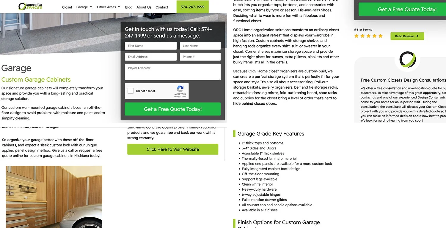 The hero section is the first thing a customer will see when they click through the targeted ads, so I needed to make it concise and engaging. I prioritized the service in the main headline and highlighted the unique selling points in bullet form. For the hero image, I used one of the many nice lifestyle photos provided by the company’s manufacturer, adding a dark overlay to ensure the text remained legible. I used the company’s bright green colour to highlight the contact form. The CTAs are responsive, as they change colour when hovered over, as is the header, which sticks to the top of page as the user scrolls. Further down, I showcased some of the company’s social proof to establish legitimacy. With its concise copy, bold contrasting colours, responsive design, and marks of experience, the hero section conveys high-quality, professional work.