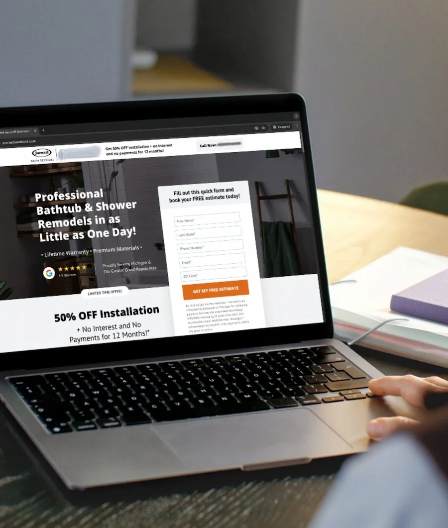 Between 2023 and 2026, I served as the Lead Designer for a Michigan-based bathroom remodeling firm during their most aggressive growth phase. While the client aimed to double their $7.7M revenue, my specific mandate was to optimize their paid search funnel.
